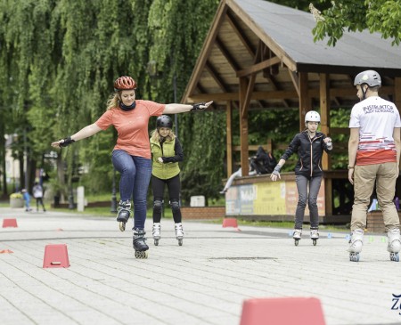 W Parku Miejskim im. T. Kościuszki w Zgierzu (w wydzielonej części pasażu, przed sceną) można nauczyć się jazdy na rolkach - artykuł