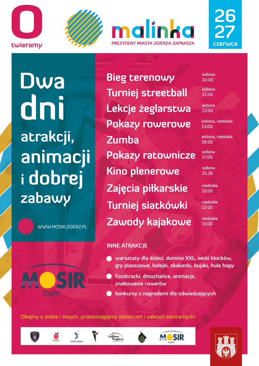 Turnieje sportowe (w tym zajęcia prowadzone przez zgierskie kluby), pokazy żeglarstwa, gry terenowe, lekcje zumby czy pokazy ratownictwa prowadzone przez pracowników MOSiR – to tylko niektóre z zapowiedzianych na 26 czerwca atrakcji.