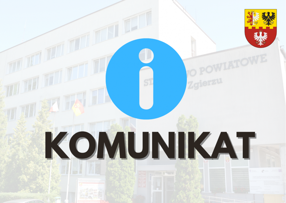 W związku z rosnącą liczbą zachorowań na COVID-19, władze Powiatu Zgierskiego podjęły decyzję o zamknięciu Starostwa dla interesantów od 24 stycznia 2022 r. do 4 lutego 2022 r., w obydwu lokalizacjach (ul. Sadowa 6a i ul. Długa 49 w Zgierzu), w tym Kasy przy ul. Sadowej 6a.