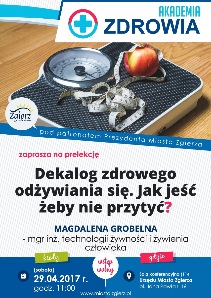 AKADEMIA ZDROWIA zaprasza na prelekcję: "Dekalog zdrowego odżywiania się. Jak jeść, żeby nie przytyć?".