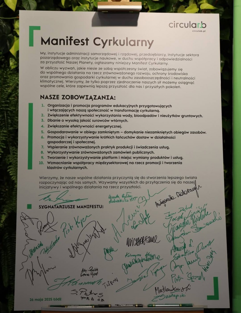 Wpisując się w ideę zrównoważonego rozwoju, 26 maja 2025 roku Prezydent Miasta Zgierza Przemysław Staniszewski podpisał Manifest Cyrkularny w siedzibie Wojewódzkiego Funduszu Ochrony Środowiska i Gospodarki Wodnej w Łodzi.