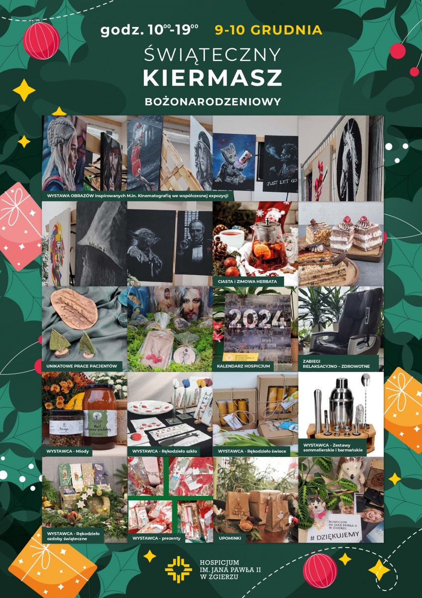 9 i 10 grudnia (sobota i niedziela) 2023 roku w godz. 10-19 serdecznie zapraszamy do siedziby Hospicjum Stacjonarnego Zgierz ul. Parzęczewska 72, 72a, 72b