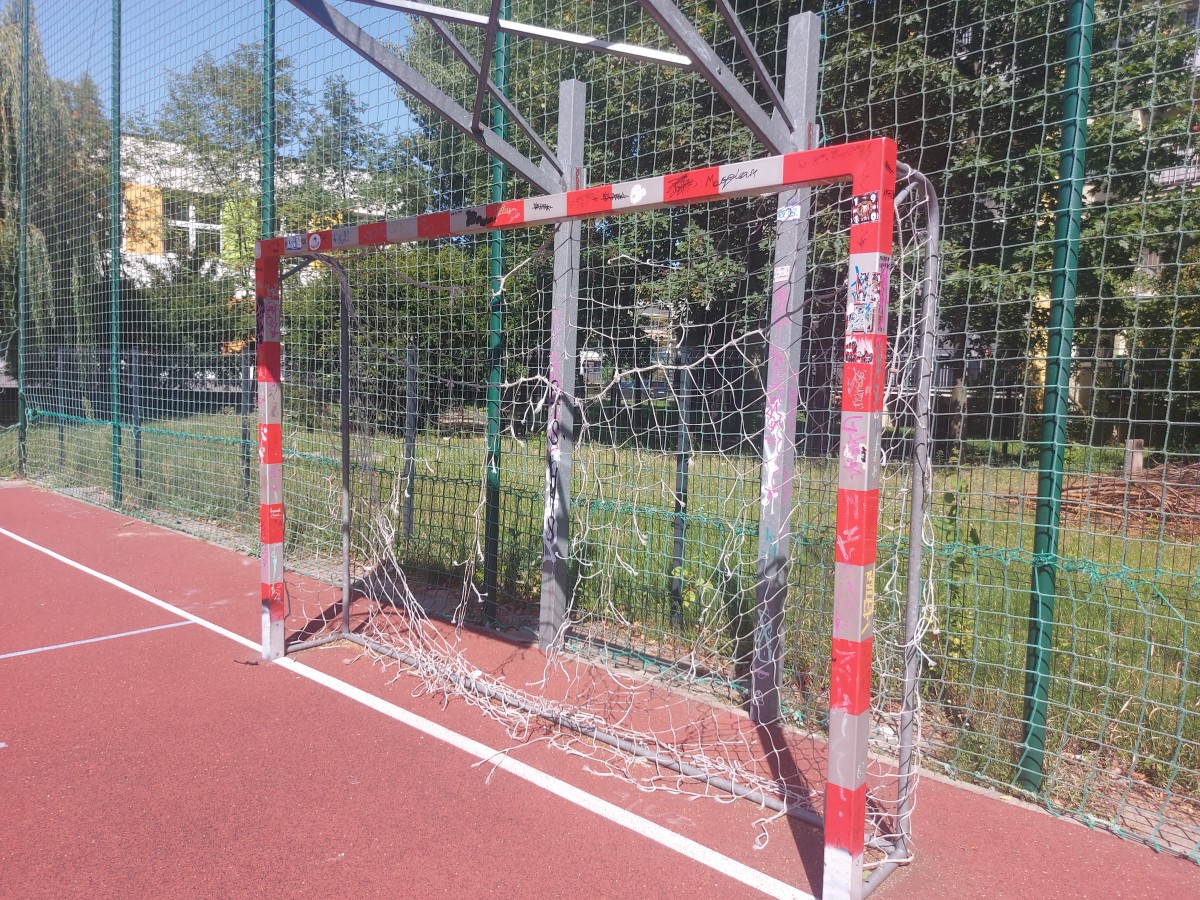 Boisko zostało odgrodzone od terenu szkoły, aby każdy mógł korzystać z niego swobodnie, a jednocześnie by chronić szkolny plac zabaw przed uszkodzeniami. Niestety, dobre intencje i wysiłki osób dbających o ten obiekt zostały ponownie zlekceważone. W sierpniu 2025 roku na terenie obiektu stwierdzono poważne uszkodzenia: wgniecioną furtkę, pomazaną tablicę z regulaminem, porwane siatki w bramkach oraz dziurawe siatkołapy. Straty są znaczące - szacunkowy koszt naprawy oscyluje w granicach 15-20 tysięcy złotych.
