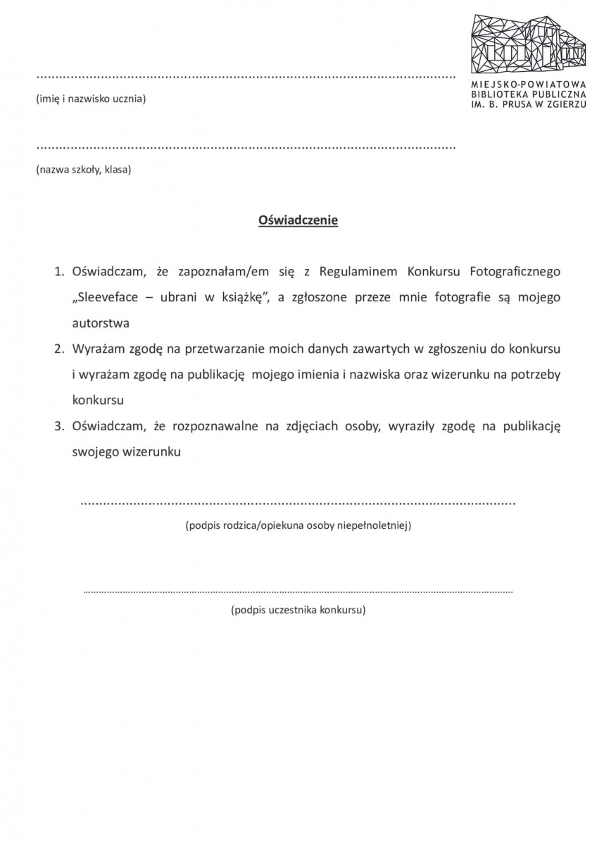 - Zgłoszenie prac do konkursu jest równoznaczne z wyrażeniem zgody na publikację danych oraz wizerunku laureatów.