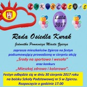 Rada Osiedla Kurak w Zgierzu zaprasza w ostatnią środę miesiąca (30 sierpnia 2017 r.) o godz. 17:00 na piknik "Pożegnanie Lata 2017".