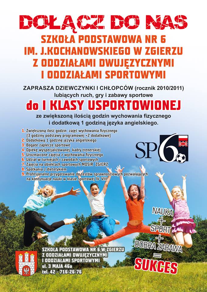 Rozpoczynamy nabór uzupełniający do pierwszych klas Szkoły Podstawowej nr 6 z Oddziałami Dwujęzycznymi i Oddziałami Sportowymi.