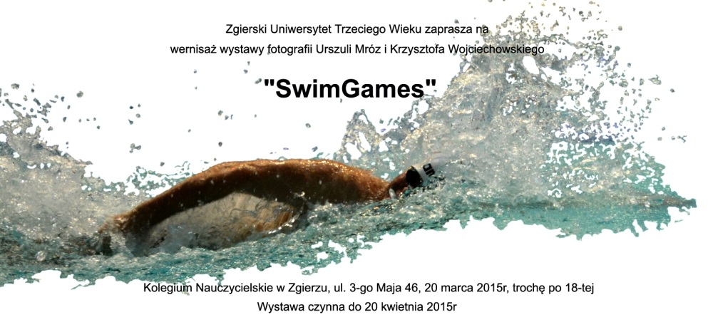 Zgierski Uniwersytet Trzeciego Wieku zaprasza na wernisaż wystawy fotografii Urszuli Mróz i Krzysztofa Wojciechowskiego "SwimGames"