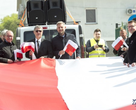 Dziękujemy za wspaniały pomysł Hufiec ZHP Zgierz, dziękujemy wszystkim uczestnikom defilady. W tym roku gośćmi pochodu byli przedstawiciele francuskiego miasta Bischwiller. Chętnie włączyli się w rozdawanie flag przechodniom, zgierski zwyczaj świętowania 2 maja chyba im się spodobał. Polska flaga odwzorowuje kolory chorągwi polskiej, białego orła na czerwonym tle. Znak w godle, czyli orzeł, jest ważniejszą jego częścią niż tło, dlatego kolor biały jest na górze, a czerwony na dole. Gdybyśmy odwrócili te barwy, mielibyśmy flagę Monaco albo Indonezji.