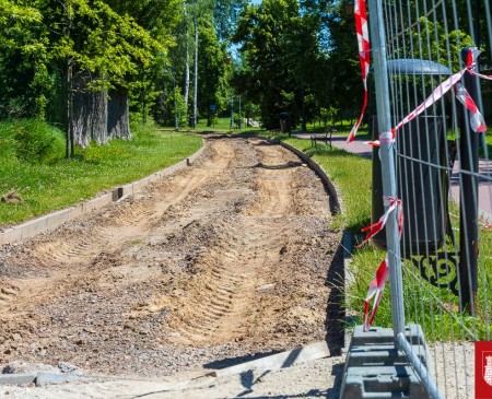 Nowoczesna, żywiczno-epoksydowa i wodoprzepuszczalna warstwa zewnętrzna chodnika pojawiła się już w niektórych częściach Parku Miejskiego im. Tadeusza Kościuszki.