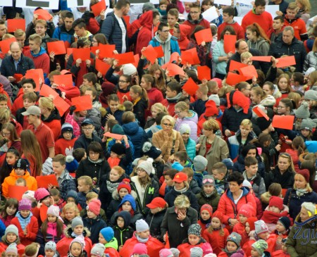 Na placu Jana Pawła II, dzieci i młodzież ze zgierskich szkół utworzyły Żywą Flagę. Było pięknie! To kolejna odsłona miejskich obchodów 100-lecia odzyskania Niepodległości (program).