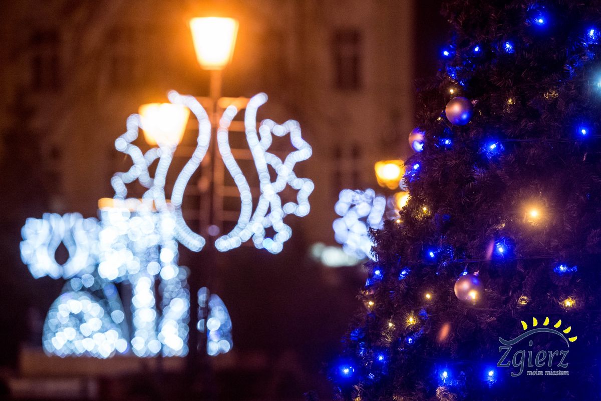 Świetlne ozdoby świąteczne na pl. Kilińskiego w Zgierzu