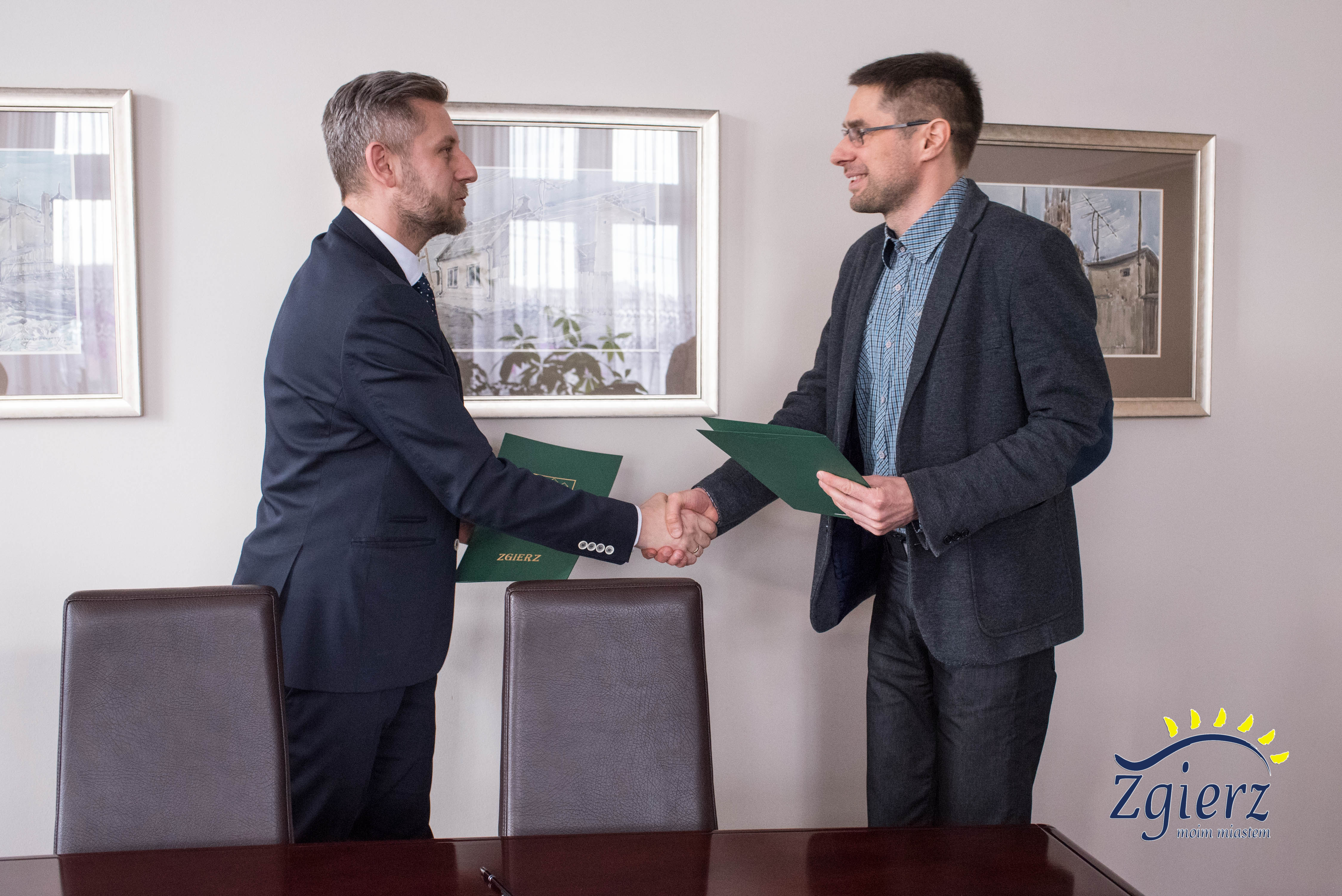 rezydent Miasta Zgierza Przemysław Staniszewski oraz prezes Instytutu Nauk Społeczno-Ekonomicznych dr Rafał Jaros