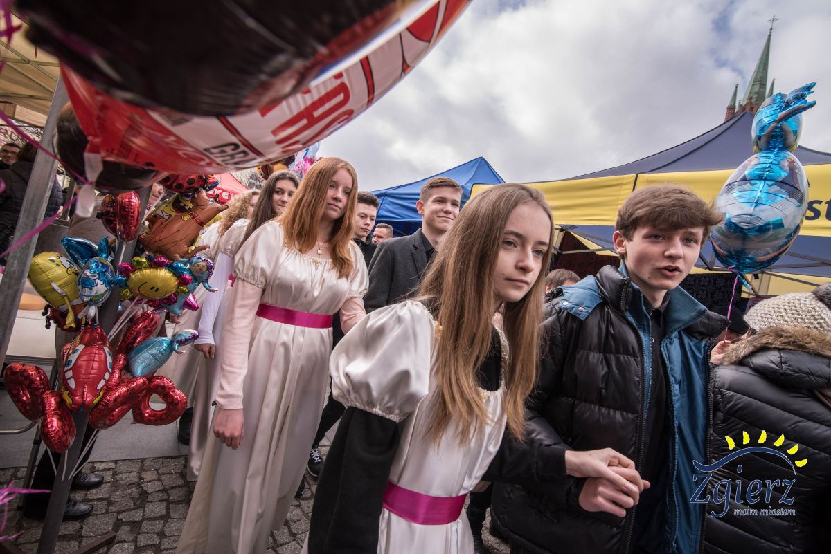 Uczniowie zgierskiego Gimnazjum nr 3 tańczą poloneza