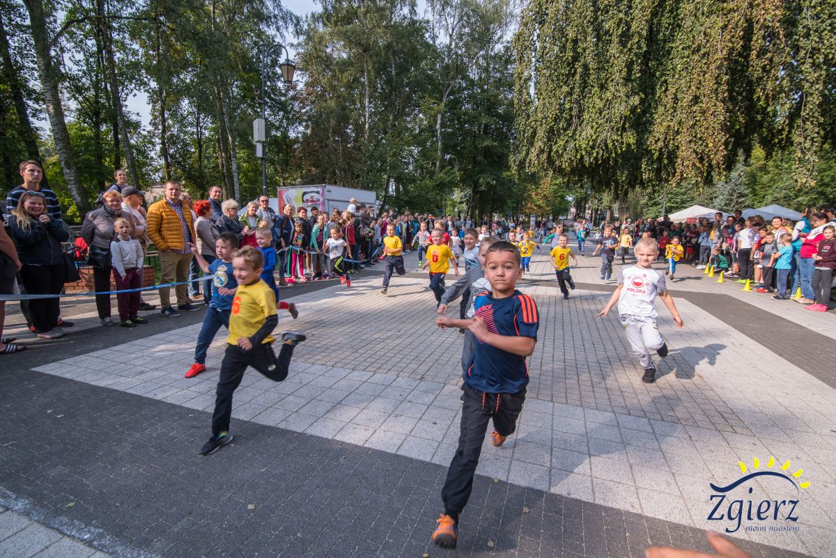 Dzieci biegnące w Parku Miejskim im. T. Kościuszki
