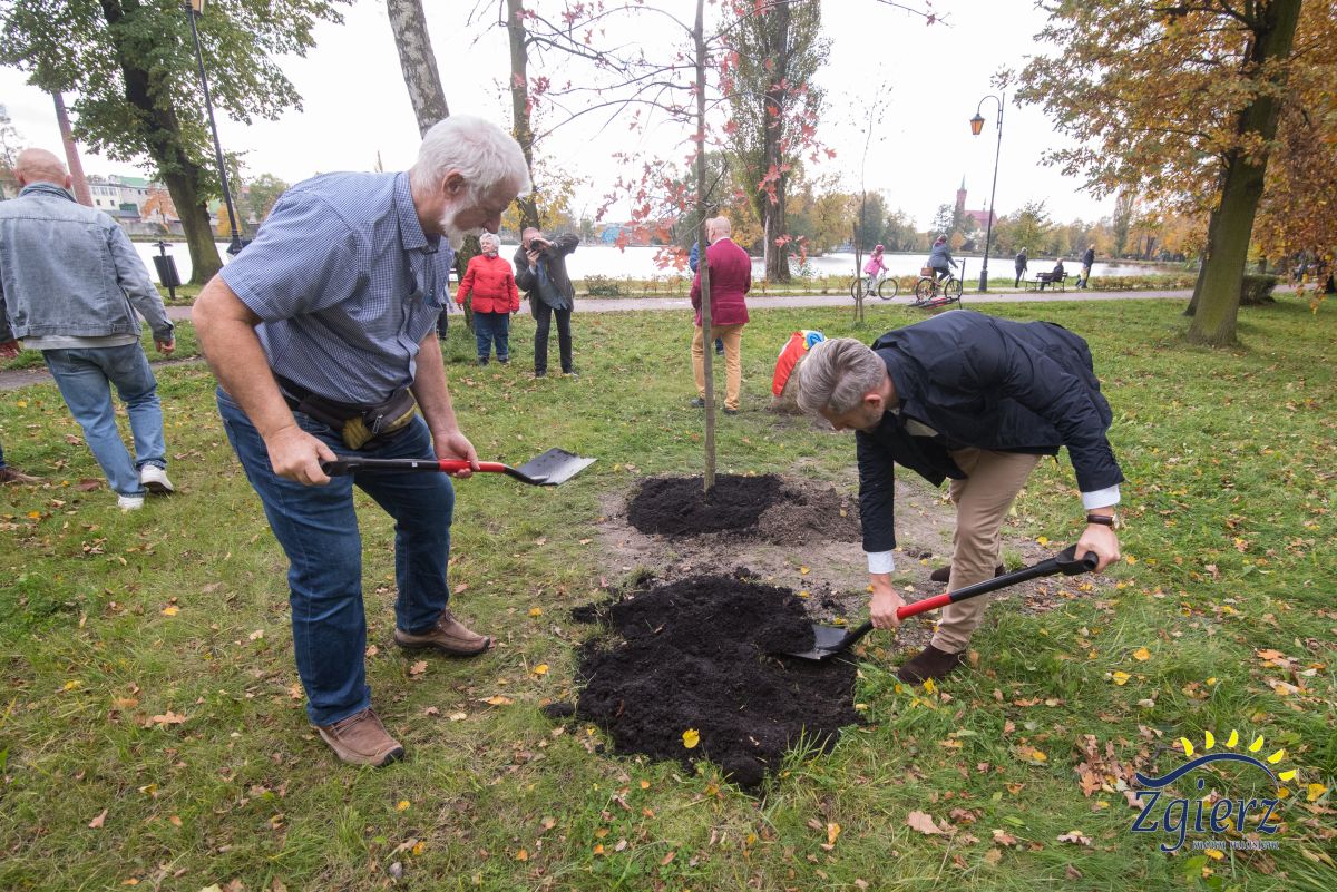 Drzewo sadzą Felix Molski i Przemysław Staniszewski