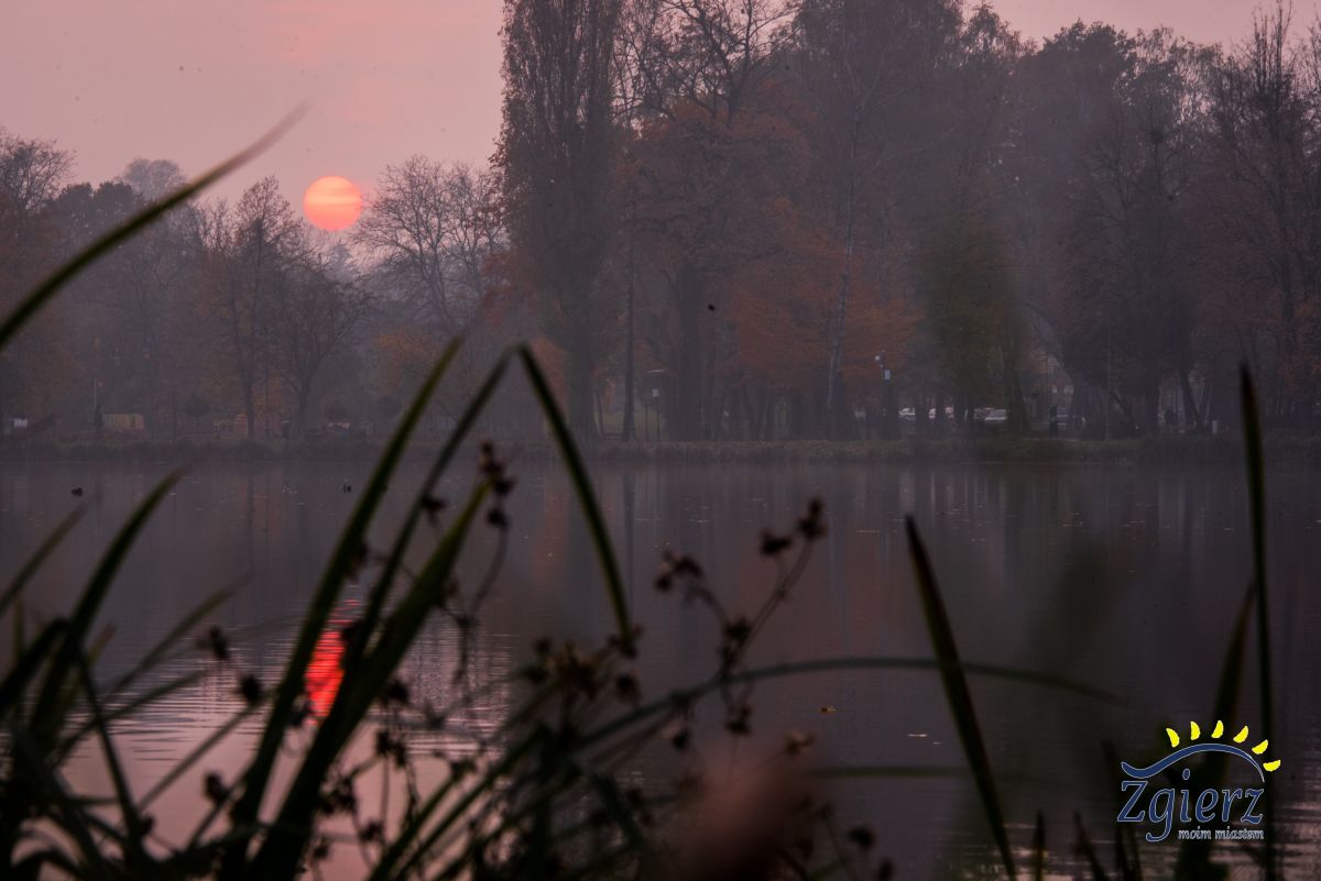 Zachód słońca sfotografowany w Parku Miejskim im. T. Kościuszki