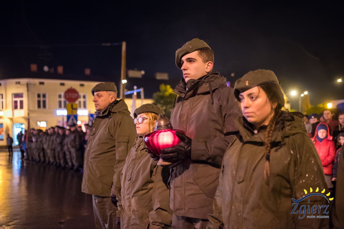 Zgierscy harcerze przekazują "Ogień Niepodległości" przywieziony z Kostiuchnówki