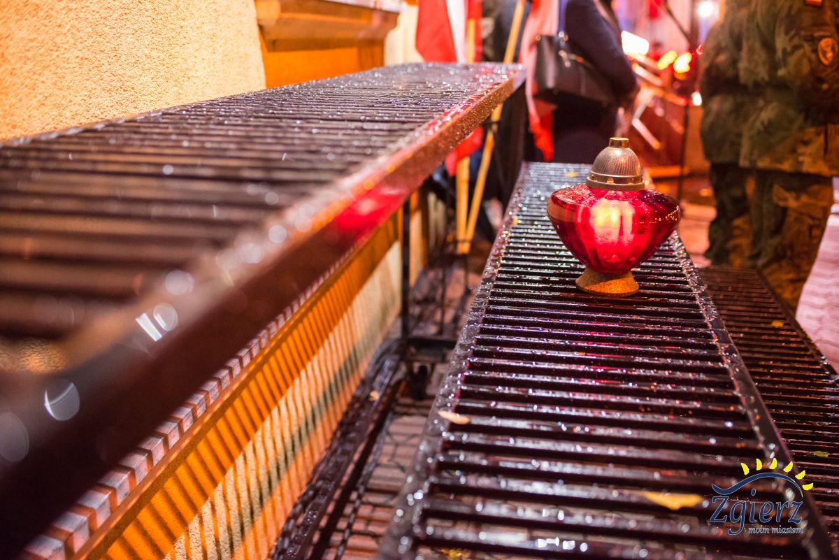 Znicz pod tablicami pamiątkowymi przy Urzędzie Miasta Zgierza