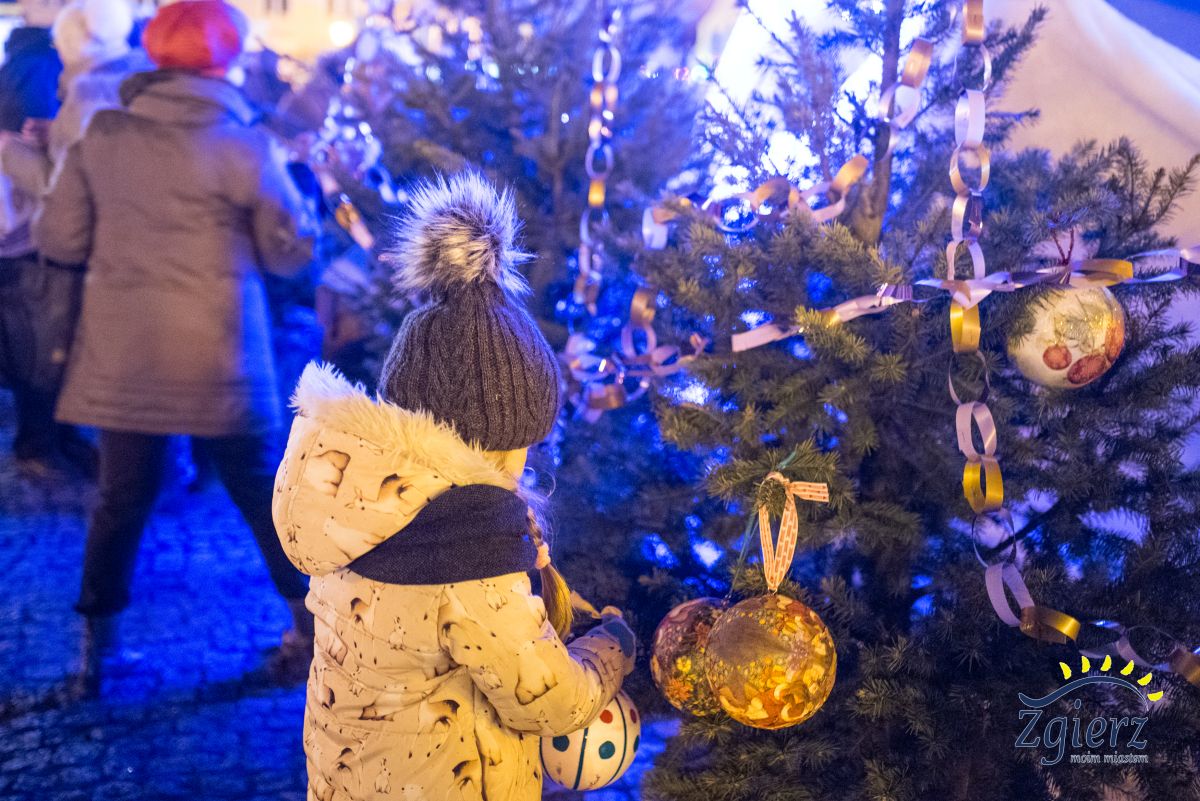 Wspólne ubieranie choinek znajdujących się w Strefie Świątecznej