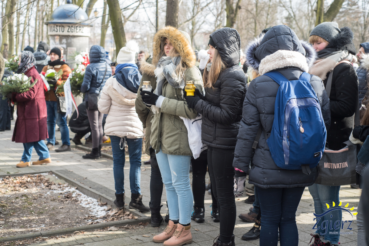 Uczestnicy uroczystości rocznicowych przed pomnikiem Waleriana Łukasińskiego