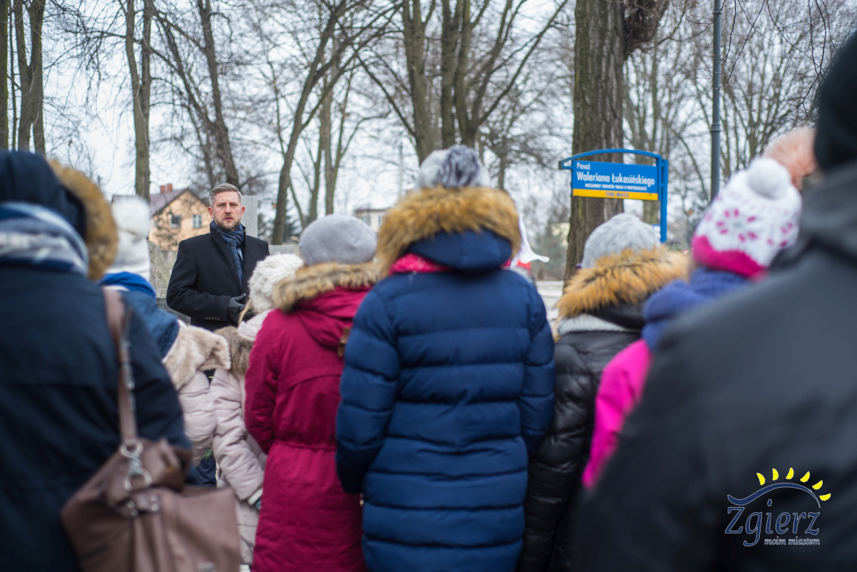 Uczestnicy uroczystości rocznicowych przed pomnikiem Waleriana Łukasińskiego