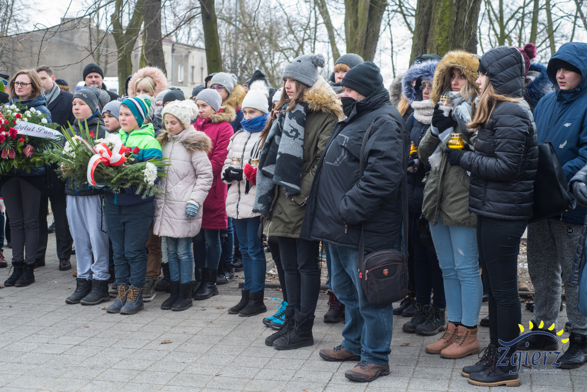Uczestnicy uroczystości rocznicowych przed pomnikiem Waleriana Łukasińskiego