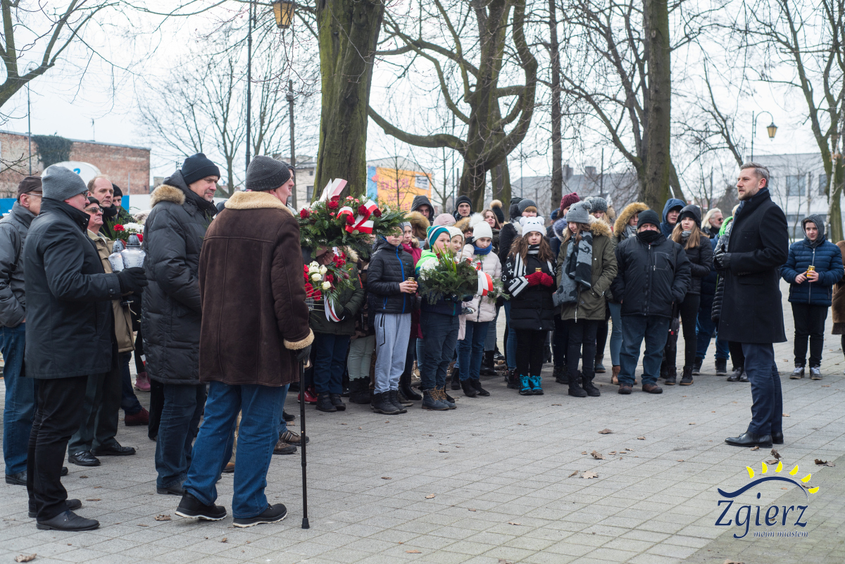 Uczestnicy uroczystości rocznicowych przed pomnikiem Waleriana Łukasińskiego