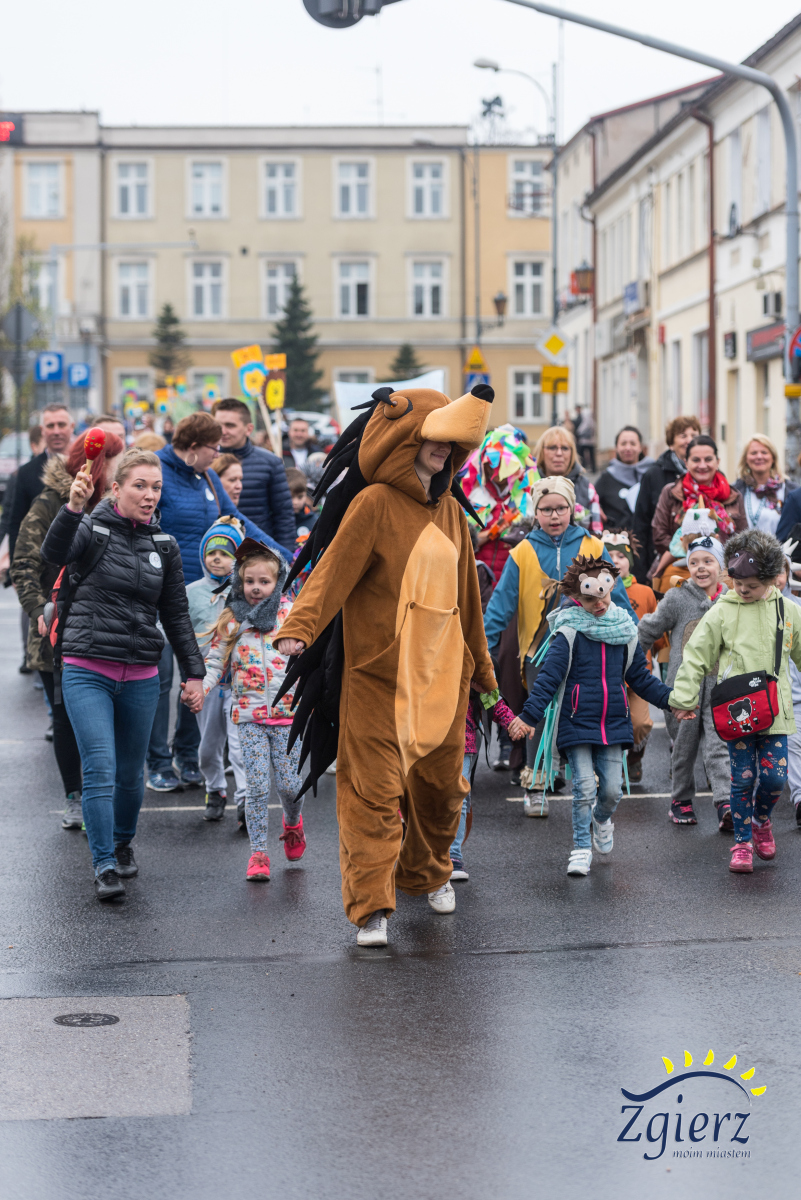Uczestnicy Parady jeży ze Zgierza idą ulicami miasta