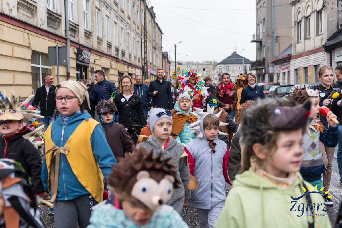 Uczestnicy Parady jeży ze Zgierza idą ulicami miasta