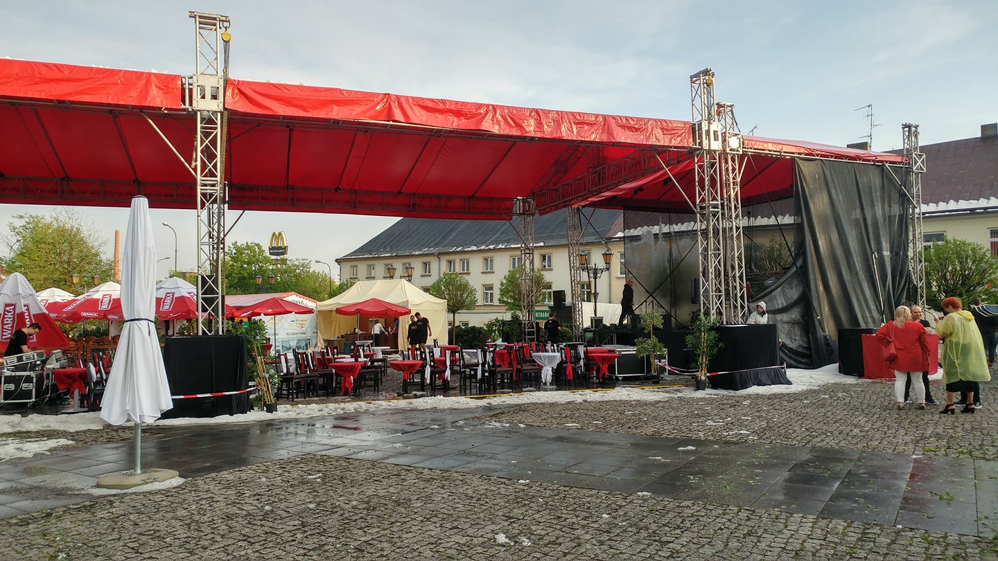 Scena na pl. Jana Pawła II po przejściu burzy z gradem