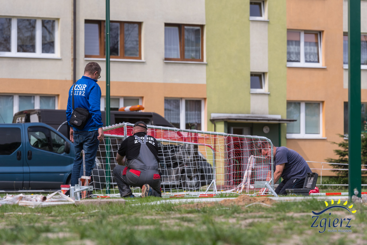 Montaż bramek i piłkochwytów na boisku przy ul. Gałczyńskiego