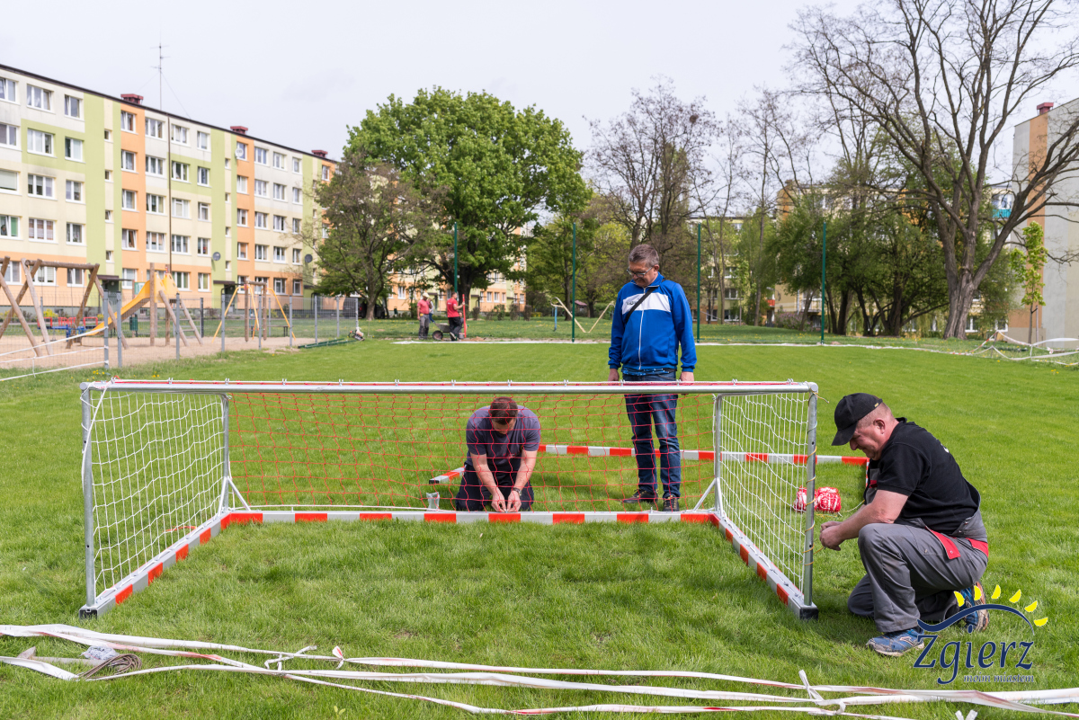 Montaż bramek i piłkochwytów na boisku przy ul. Gałczyńskiego