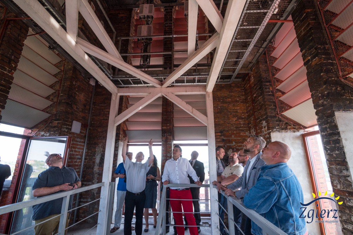 Goście zwiedzają wieżę kościoła św. Katarzyny