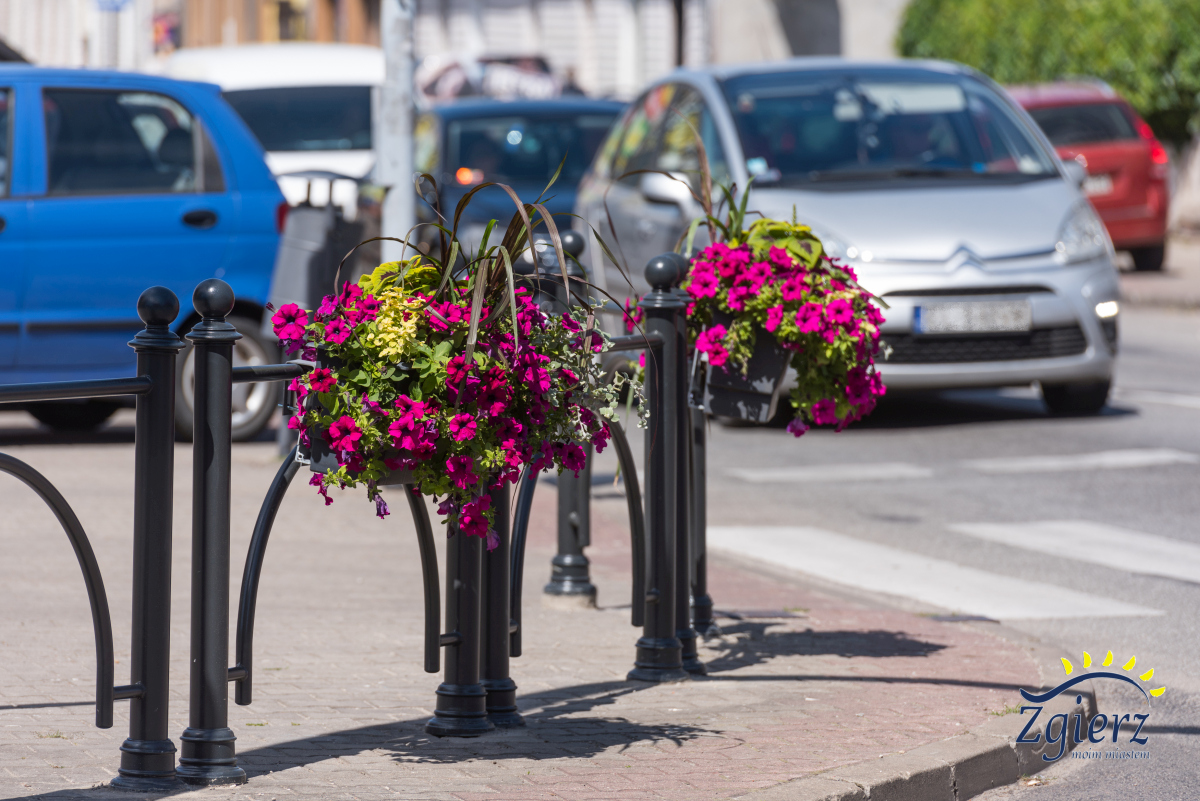 Ozdobne barierki ze skrzynkami kwitnących kwiatów