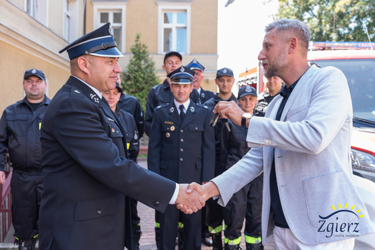 Prezydent Miasta Zgierza przekazuje strażakom OSP kluczyki do pojazdu