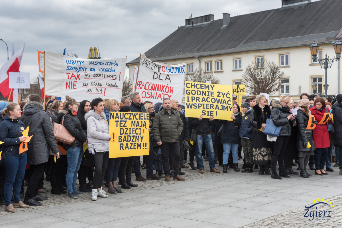 Pikietujący nauczyciele na pl. Jana Pawła II
