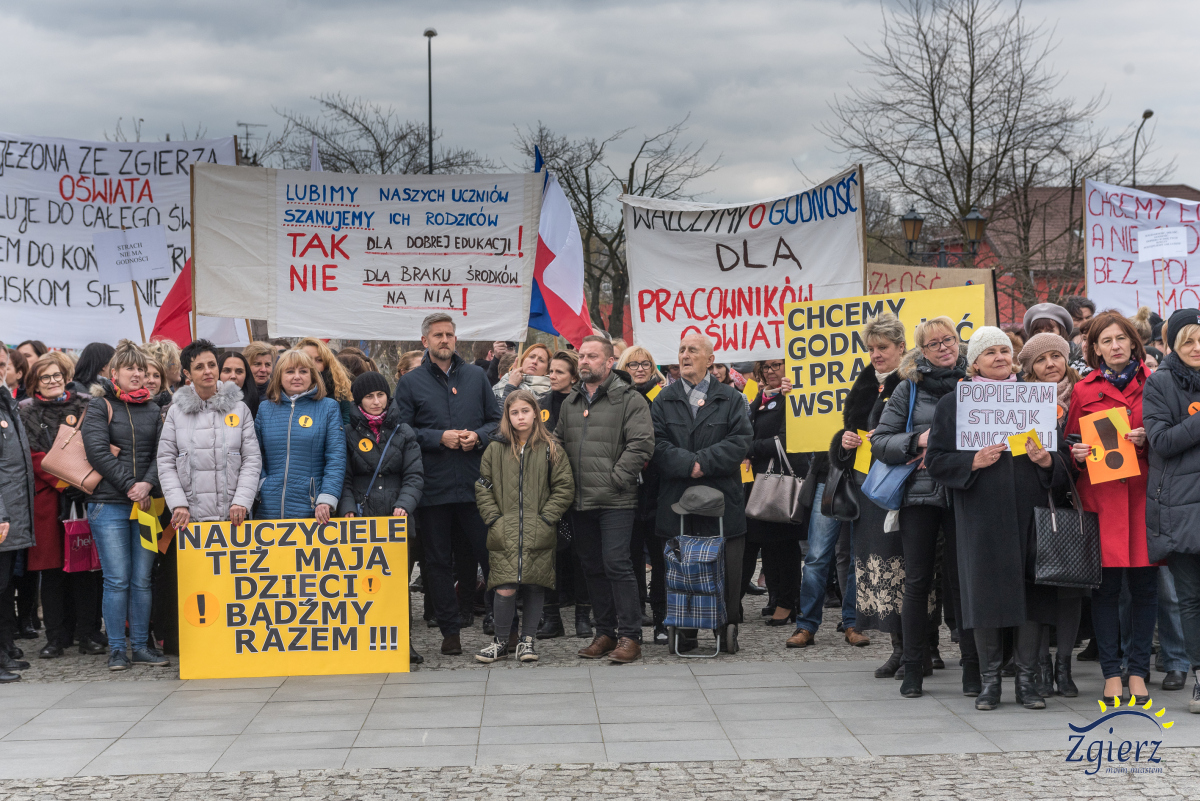 Pikietujący nauczyciele na pl. Jana Pawła II