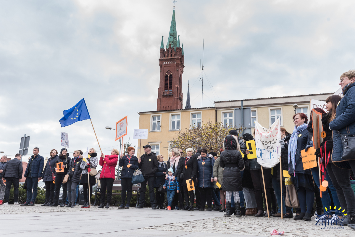 Pikietujący nauczyciele na pl. Jana Pawła II