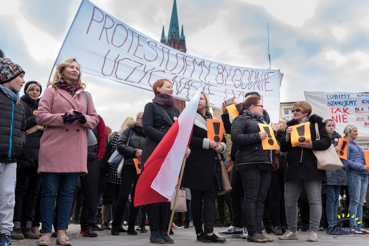 Pikietujący nauczyciele na pl. Jana Pawła II