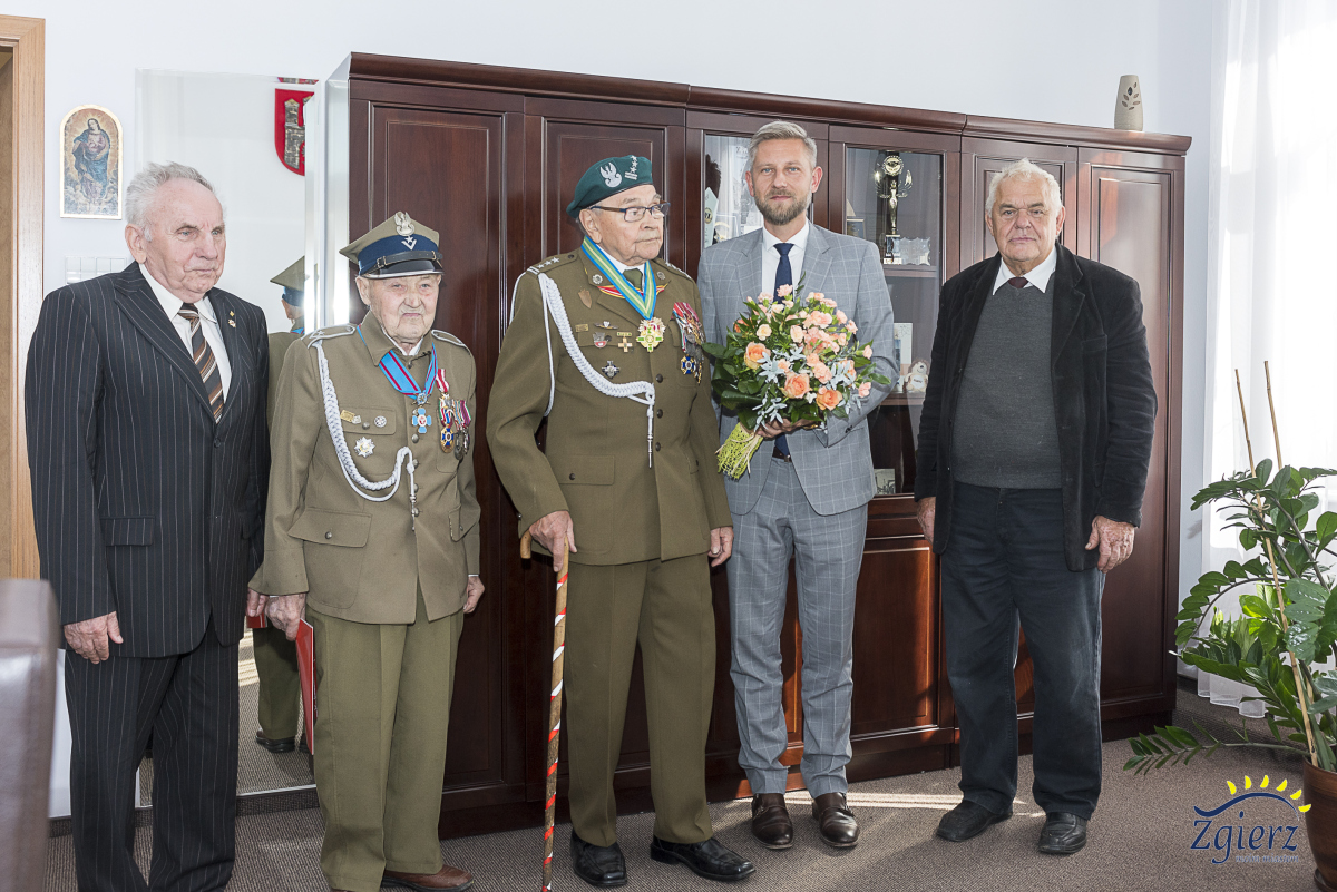 płk Franciszek Tokarz, Przemysław Staniszewski i goście w gabinecie prezydenta Zgierza