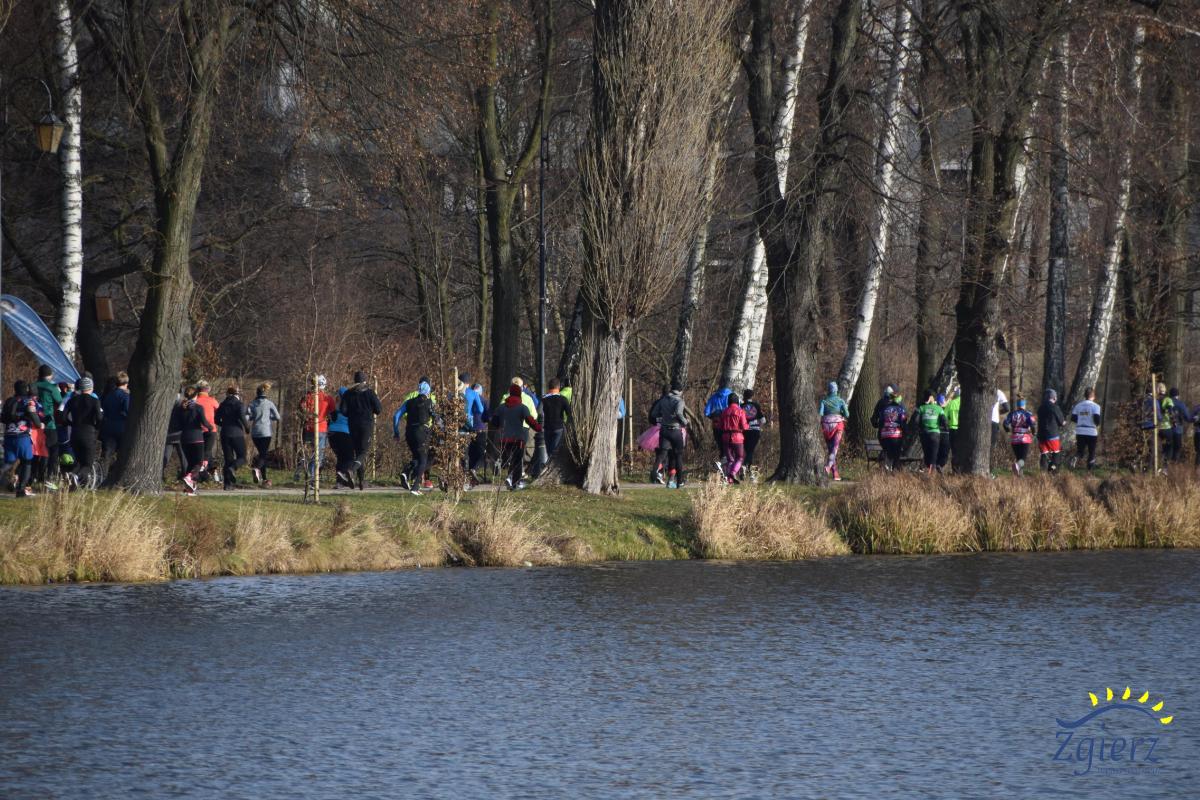 Biegnący zawodnicy wokół stawu