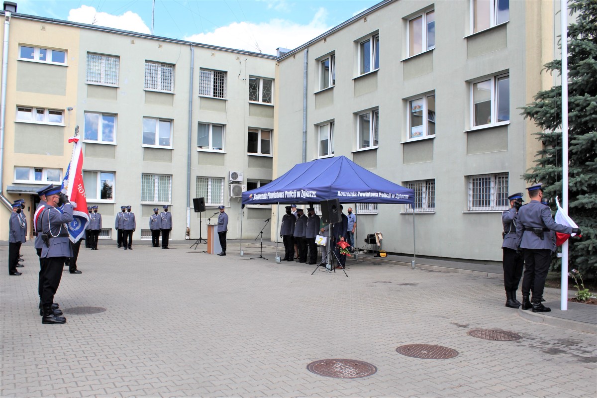 Uroczystości na dziedzińcu Komendy Powiatowej Policji w Zgierzu