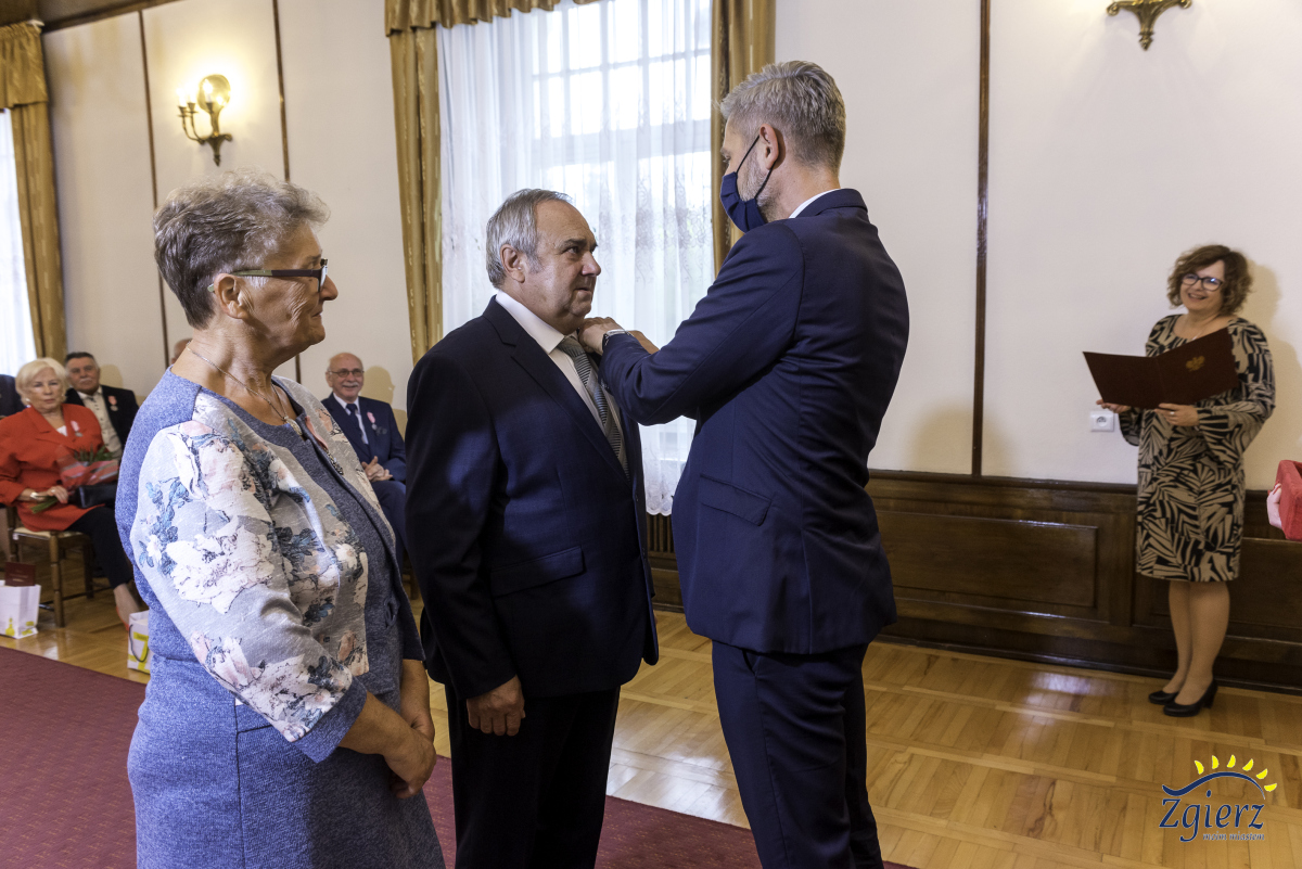 Prezydent Miasta Zgierza wręcza parom medale i kwiaty