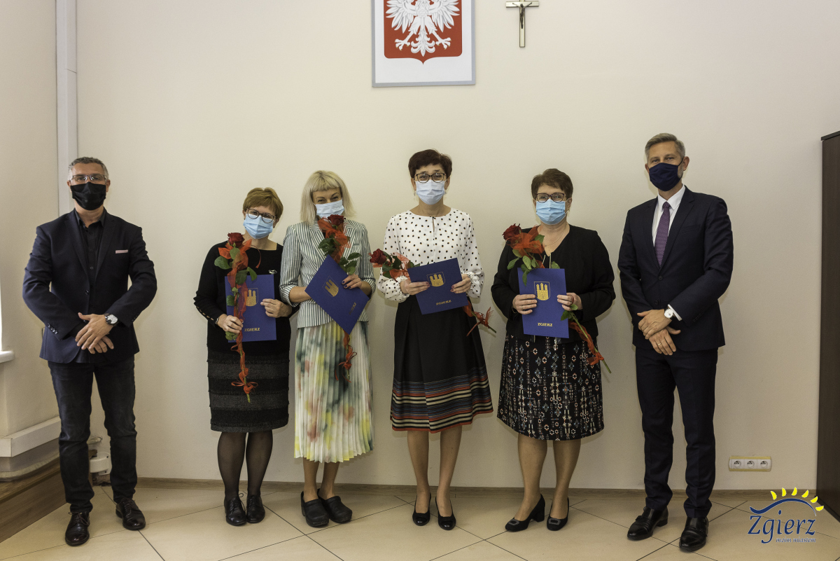 Pamiątkowe zdjęcie wyróżnionych osób z prezydentem i naczelnikiem