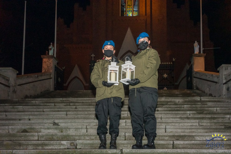 Zgierscy harcerze ze światełkiem na schodach przed kościołem pw. św. Katarzyny