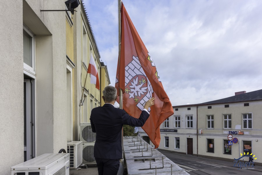 Przemysław Staniszewski (Prezydent Miasta Zgierza) wciąga na maszt nową flagę