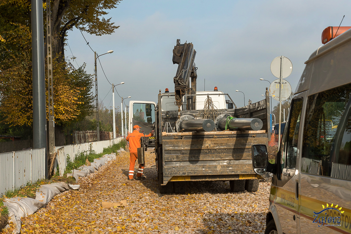 montaż słupów trakcji tramwajowej - 26.10.2020 r.