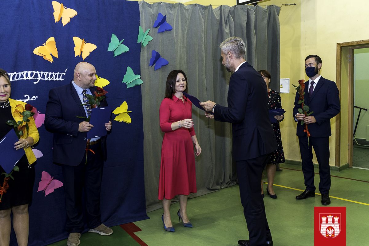 Przemysław Staniszewski (Prezydent Miasta Zgierza) wręcza nagrody nauczycielom