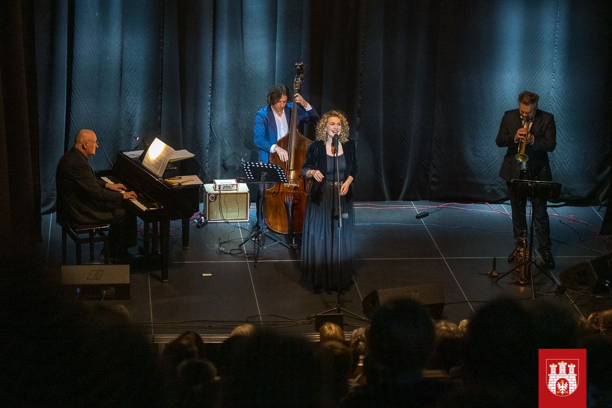 Joanna Trzepiecińska z zespołem na scenie w Starym Młynie