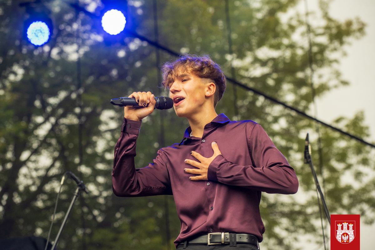 Na scenie śpiewa uczestnik konkursu "ZgJeżoGranie 2022"